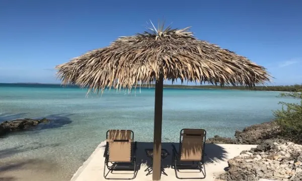 The villa, fully renovated inside and outside, sits on a unique private beach leading to the beautiful shallow bay. Ten Bay is located in central Eleuthera on the Caribbean side of the island, close to Palmetto Point. The Bay is protected from rough waves and is well known for its calm water, which is excellent for children. The water is calm and shallow with a clean sandy bottom, perfect for swimming, kayaking, and snorkeling, especially at either end of the bay, where it is rocky wher you can find a variety of sea creatures and seashells. The beach is always tranquil. You may be meeting a few people renting one of the homes in the area.