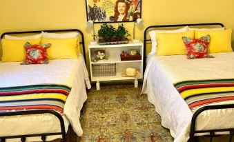 The host responded quickly, letting us add guests after the initial booking for a group of 6. The couch folded down like a futon and slept 2 grown adults comfortably. The mattresses in the rooms were quite firm. There was ample space so we weren't on top of each other inside. We could sit around the kitchen table, living room table, the picnic table, or the fire ring outside. The grill was clean, full of propane and ready for use. There was wood for fires and long metal "forks" for s'mores! There were games too and we spent an evening playing Taboo on the picnic table with string lights on, fire going and burgers on the grill. I was pleased with the privacy, being that it was a duplex. The yard is primarily on the side of the house, so you're not sharing a fence with your neighbors. Some things I will note is the shower in the room with double beds was rather confusing to work. The water pressure and temp nobs are separate, but we couldn't get them right, so we all just showered in the other bathroom. The dishwasher we couldn't figure out how to stop the beeping or get it to turn on after we ran it once and reloaded it. If the fridge door won't give you ice, make sure the bottons are "unlocked". There's a TV in every room. We were able to run around outside barefoot in the grass and even had room to smack a volley ball around. Small painted rock garden. Small gas station a block away. Safe neighborhood. Easy check-in/out with simple instructions for leaving. A++