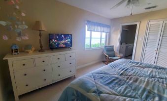 The master bedroom has an attached master bathroom. You can lay in the king size bed while watching the waves roll in.