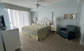Had a great experience in the two bedroom unit 504. It was super spacious. Much bigger than the pictures look. Location was perfect for beach and boardwalk and the ocean view was beautiful from our long balcony. Everything was very clean and the checkout directions left very little work for us guests which is nice. My only criticism is the door leading to the balcony in the room with the king bed, doesn’t fully close. There is daylight coming through so it’s open enough for noise and heat. We pulled the blackout curtains all the way in front of it and that helped, but that room stayed warmer the whole time. That def needs a repair, but it was a small thing for an otherwise excellent experience.