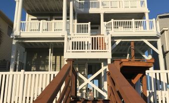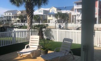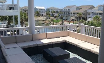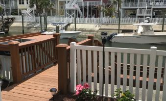 Our 2,900 sq. ft. canal home has plenty of space for large families and groups. In addition to the 5 bedrooms/5 1/2 baths, our home has 2 separate living areas, an enclosed game room with Ping Pong, Shuffle Board, Darts & Corn Hole Boards, an outdoor swimming pool with basketball goal, and a floating dock with full boat access-canal is over 6ft deep at low tide and 12 ft on high tide-direct access to Intracoastal. Each of the 5 bedrooms has their own bathroom and access to the outdoor deck space. Adults can have their own privacy with 2 master suites, one with a private 3rd floor balcony overlooking the water.