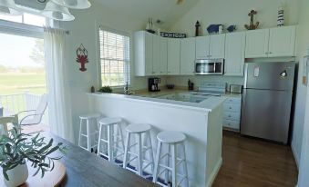 You will enjoy a spacious open living area including a living room with a smart tv for you to sign in to your favorite streaming platforms, as well as books and games for all to enjoy. The kitchen is stocked with many supplies for cooking and dining needs.