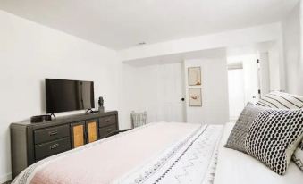 We loved this house as a base for our daughter’s wedding at a nearby venue—such a large & comfortable house with fresh decor & thoughtful touches. The mattresses were comfy and the kitchen super spacious. Plenty of off-street parking for our party of six with three cars, too. The main level guest room with en-suite bath was also helpful for an older member of our group who uses a walker. There is even step-free entry through the rear patio doors.