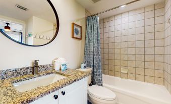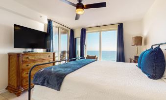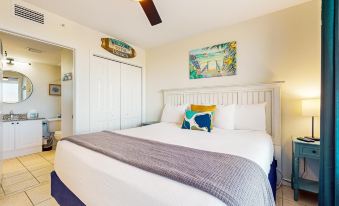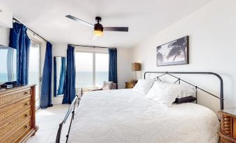 When you're ready to spend time at home, you'll find charming coastal decor, an open layout, and plenty of space to hang out together. The full, well-equipped kitchen makes meal prep a breeze, and the gang can dine together at the adjacent table. Spend evenings relaxing in the central air-conditioning while watching TV or using the free WiFi to post the day's pics to social media. Call it a night in one of the well-appointed bedrooms, which includes a primary suite with that same gorgeous view. Another perfect beach day awaits tomorrow - all that's left to do is book it.