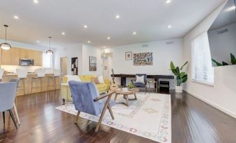 Just steps away from the best Downtown and Midtown OKC have to offer. Inside, this walk-up flat is sunny, spacious, clean and modern. Beautiful dark wood floors contrast prettily against blonde tone cabinetry. The open plan kitchen/living/dining is spacious and contemporary. This home is filled with natural light. Fixtures are simple throughout, and neutral pale gray carpet adds comfort underfoot in bedrooms. This condo offers both relaxation and entertainment with amenities like a shuffleboard and a guitar for your leisure. The flat's balcony is a perfect spot, morning or evening. Secure gated parking featuring two assigned spaces, with additional on-street parking options.About pets:Pets allowed: dogs and cats less than 20 lbs per pet (limit 2 pets total).About checkOut:Check out before 12:00 PM.About children:Children allowed: ages 0-17.About checkIn:Check in after 3:00 PM.About smoking:Smoking allowed: in designated areas.About minBookingAge:Minimum age to rent: 21.About events:Events allowed: family gatherings and birthday parties.Maximum event attendees: 10.
