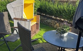 Our beautiful thatched cottage is located in the historic center of Oldsum. The apartment extends over 2 floors, living downstairs and sleeping upstairs. From the large living room leads directly onto her breakfast terrace, where your personal beach chair waiting for you. In the immediate vicinity you will find shopping, nice cafes and small shops. To the beach after Utersum is about 5 km and to the Oldsumer natural beach 1km. Easy to reach by bike.About pets:No pets allowed.About checkOut:Check out before 10:00 AM.About children:Children allowed: ages 0-17.About checkIn:Check in after 1:00 PM.About smoking:Smoking is not permitted.About minBookingAge:Minimum age to rent: 18.About events:No events allowed.