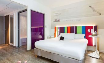 Cet hôtel se distingue de tous ceux de sa catégorie par son confort et son originalité. Il jouxte l'Ibis budget et le choix entre les deux est très vite fait tant la différence entre ces établissements du même groupe est notable pour un tarif qui demeure très accessible. Les couleurs sont omniprésentes, l'accueil est agréable et la chambre présente des nouveautés en termes d'éclairage. La décoration est vraiment sympa avec un lit queen size sur une symbolique "transat", le canapé est le bienvenu. L'espace est conséquent et permet d'accéder à des toilettes séparées de la salle de bain. Le petit déjeuner est excellent et doté d'un extracteur de jus pour les amateurs de jus d'orange pressé.