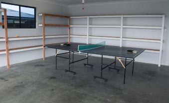 The other tv has a DVD player and PlayStation 3 with games, board games, ping pong table, outdoor games.
