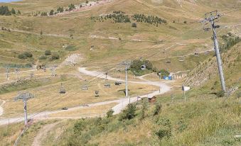 Orcières: Apartment block. 100 m from the skiing area. For shared use: swimming pool heated. In the house: lift. Supermarket 500 m. "T. Bergerie", 2-room apartment 28 m2, on the ground floor. Object suitable for 4 adults. 1 room with 1 double bed and TV. Living room with 1 sofabed and 1 pull-out bed. Kitchen (dishwasher, 4 ceramic glass hob hotplates, toaster, microwave, freezer, electric coffee machine). Bath/WC, sep. WC. Balcony. View of the mountains. Facilities: Internet (WiFi, free). Parking (1 car) at the house. Please note: non-smokers only. Smoke alarm. Offer by a commercial proprietor according to Art. 155, IV, CGI