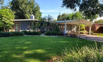 Entering the home, the living room welcomes you with a relaxing warmth and charm. There is plenty of room to stretch out and relax. The hallway off the dining area leads to the three spacious and cozy bedrooms all with king size beds, ceiling fans and cable TVs! (*there is a queen size, self inflating air mattress available to use as well for extra sleeping!). The two other separate bedrooms share the hallway full bathroom. In addition to the Foosball table in the living area, there is an XBOX1 in the "kids" room for all to enjoy....We invite you to enjoy the beautifully landscaped front and back yards. The front yard was revamped in 2018 by Mika and I. The backyard took much longer (a year!) as we xeriscaped it (again ourselves) and poured and hand-laid the stone sidewalk on the right side of the yard! You will enjoy the beautiful sunshine as well as a shady pergola.. all while relaxing to the bubbling backyard centerpiece fountains as you grill out on the propane grill...
