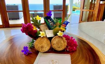 There is lush and colorful tropical landscaping throughout the grounds, including local plants that attract butterflies and hummingbirds. There are frequently beautiful hummingbirds and butterflies hovering on the flowers with the ocean views in the background. There is also a mature Ylang Ylang tree that often provides an amazing aroma throughout the house at sunset, when the winds switch and come from the mountain through the house. Enjoy watching a sunset with the fresh aroma and scent of Ylang Ylang flowing through the house!