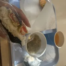 호텔에서 아침에 제공되는 특선 일식 조식은 오니기리(주먹밥)와 여러 종류의 국으로 구성되어 있었어요. 미소된장국과 보르쉬가 나왔는데, 다른 한 가지는 무슨 맛인지 정확히 알 수 없었습니다.