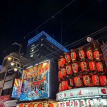 위치는 쓰텐카쿠 타워 근처에 있습니다. 간사이 공항에서 난카이 전철 신이마미야 역까지는 도보로 약 8분 거리입니다. 위치가 편리해서 밤에 먹을 게 없을까 걱정할 필요가 없습니다.