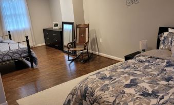 This home has everything needed located on the main floor- 1 bedroom, 2 baths, fully equipped kitchen, dining, living area and laundry room. The bonus is there are 3 rooms upstairs with a bath room. Outside enjoy views of the mountains from the large front porch or relax by the fireplace in the hot tub. We also have a game room that has lots of board and card games with a Playstation 3 for the gamers in the group.About pets:No pets allowed.About checkOut:Check out before 11:00 AM.About children:Children allowed: ages 0-17.About checkIn:Check in after 4:00 PM.About smoking:Smoking is not permitted.About minBookingAge:Minimum age to rent: 21.About events:No events allowed.