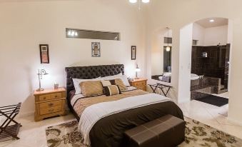 There are 3 bedrooms and 2 full baths. Master Bedroom with King size bed. En-suite Master bath has jetted jacuzzi tub and walk in shower private exit to patio. Two bedrooms with queen beds. Toilet in water closet. Large walk in closet/dressing room with hangers.