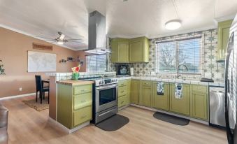 This 4-bedroom with 5 beds. 2-bath home makes for a perfect extended stay.
