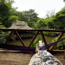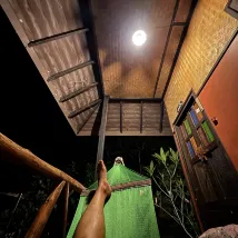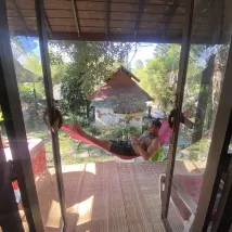 야생적인 곳에 머물고 싶다면 정말 멋진 경험이었습니다. 자연을 좋아하지 않거나 동물을 무서워하는 사람에게는 적합하지 않겠지만, 그런 취향이라면 완벽합니다. 흙집 안에서는 최대한 깔끔하고 깨끗합니다. 주인은 정말 친절하고 도움이 되며, 위치는 가장 평화로운 곳입니다. 마치 정글에 사는 것 같은 느낌이 듭니다. 아름다운 곳이고, 도마뱀 소리가 들리고, 뱀도 볼 수 있고, 밖에서는 고양이들이 야옹거립니다. 정말 평화로워서 하루 종일 해먹에서 휴식을 취할 수 있지만, 마을에서도 걸어서 갈 수 있습니다. 그리고 이런 곳에서는 항상 사치스럽게 느껴지는 뜨거운 물이 있습니다.