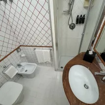 트리플룸은 크기가 적당했습니다. 시설은 다소 오래되었습니다. 주차장은 있었지만 접근이 어려웠습니다. 웨이터에게 약간의 요금을 내고 대신 운전해 달라고 부탁했습니다. 주요 명소가 도보 15분 거리에 있어 위치가 매우 좋았습니다. 왼쪽으로 돌면 사방교가 나오고, 다시 왼쪽으로 돌면 번화한 식당가가 나옵니다.