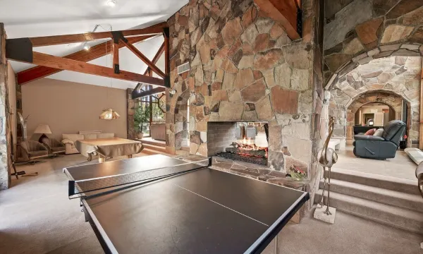 Comfortable and spacious living area filled with light and cathedral ceilings. There is a 55" flat screen Smart TV with cable and internet included.