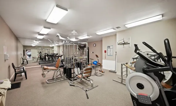 Beautiful, quiet gated community. Fountains swimming pool and hot tub. Lovely. Excellent fitness roo