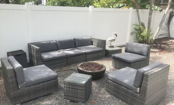 This house is very well located close to a variety of restaurants and access to the Pinellas Trail for walking/cycling. Plenty of space for a family or friends group, though that would likely be better if you could access downstairs from inside the house. It was too cool to use the garden in the evening, but in the middle of the day the pool was great. I'm sure in the middle of summer the seating and fire-pit are a bonus. The bikes available at the house are fine for a short distance, but if you plan on cycling further you would need to bring your own or rent from Tarpon Tom's close by. The nearby market is great for basics and the kitchen is well equipped. The owner was responsive to questions, no problems at all with getting information, would stay again.