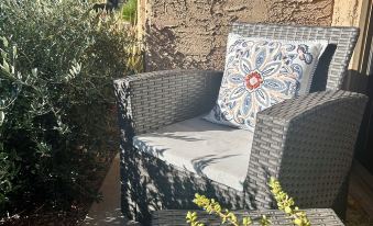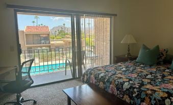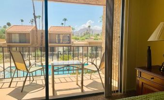 This condo boasts two large upstairs bedrooms, each with its own private balcony - one with sparkling pool views and one with a stunning view of the San Jacinto mountains. Both bedrooms have King beds. One has a TV.