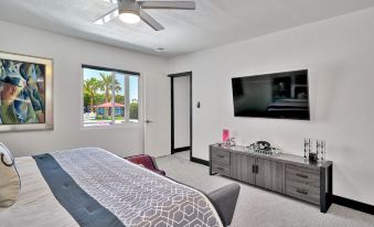 Steve and Adam are wonderful hosts. I stayed in the Fire Coral suite for a month, and I loved it. The pool is warm, clean, and colorful. The firepit was a great place to gather with the other lovely guests and talk. Fantastic BBQ grill area and a double hammock. Fresh citrus fruit trees- very precious to eat oranges fresh off the tree. Adama and Steve are generous hosts who care that their guests have a good experience. I look forward to staying there again. Fantastic, safe, quiet location and so many cheerful 'Palm Springs' touches. I recommend the Oasis!!!