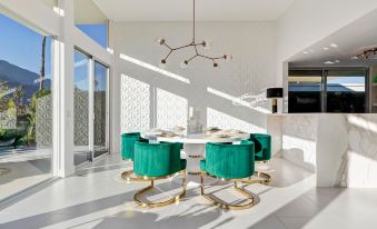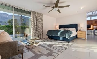 Nestled in the prestigious enclave of Kings Point within Indian Canyons, this home is the ideal destination for a getaway retreat with family or friends. Designed by renowned and pioneering mid-century modernist architect William Krisel in his famed “International Modern” style, every aspect of the house has been thoughtfully curated to ensure your utmost comfort and relaxation. Beautifully designed throughout, the house is newly furnished with top-quality finishes and state-of-the-art appliances, including a stainless-steel fridge, microwave, oven, stovetop, coffeemaker, and wine fridge. The home also features three very spacious bedrooms, each with their own ensuite bathroom and California King sized beds. There is also a powder room for guests. The attention to detail in the home will leave you breathless, from the gorgeous vintage and modern furniture to the timeless wallpaper and flawless decor. The home boasts fourteen-foot-tall ceilings and clerestory windows that provide a stunning view of Mount San Jacinto, no matter where you are on the property. Drink your morning coffee or enjoy your evening cocktail in front of these jaw-dropping mountain views that will feed your soul and blow your mind all at the same time! You can also relax and unwind in the saltwater pool and spa or sunbathe on one of the lounges. At night, you can step out onto the expansive terrace for dinner and drinks. When done, cozy up to the fireplace with a glass of wine or watch a movie on one of four flatscreen TVs. Enjoy music indoors via the Sonos speakers throughout the home. With all these amenities at your disposal, you'll never want to leave! If you're interested in exploring the area, you can visit the famed Annenberg estate “Sunnylands” or take the aerial tramway to see the entire valley. Did someone say they are hungry? Head down South Palm Canyon Drive for a wide range of options, including Rat Pack hot spots such as Spencer's or Melvyn’s, or explore newer fare such as Alice B’s. Indian Canyons Oasis is Palm Springs living at its finest! Book today!