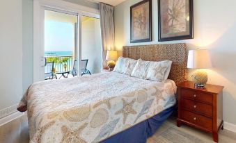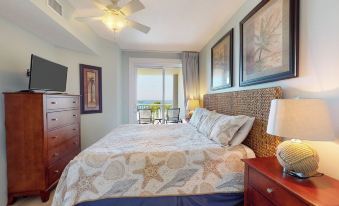 The Gulf Front master bedroom boasts a king-size bed with views of the Gulf of Mexico and has its own private access to the patio balcony. Enjoy movies in bed on the room's flat-screen TV. The master bathroom includes a soaker garden tub and a beautiful tile shower.