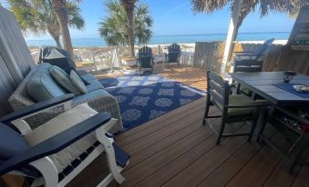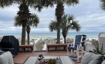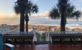 ๐๐Sunset Grace is a Lodging place in the Wilderness for me many timesOcean Front Property to vacation with Your Family, WORK fromHOME in .... Pull up , open the Door and see the Ocean ! Out of your car into the house and 20 steps into the Sand. our Sunset Grace is (Sparkling Clean ) with many Amenities a full stocked kitchen a sleeper sofa &2 recliners....with a View that is So Absolutely Beautiful!! the Ocean /The Gulf of Mexico is steps away .. Private balcony top off of Master room with a Beautiful Ocean Front view with Tropical palm trees , you can sit and watch the sunrise or sunset from Bed or the balcony .. Downstairs the Huge porch and A few steps down to the Sea Oats and Beach!!