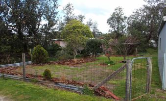 There are 3 large bedrooms, with enough beds to sleep 7. Also a huge lounge, kitchen and dining area to easily accommodate a large numbers of guests. The lounge has plenty of space to seat guests and has an air conditioner and wood heater for all round comfort in summer or winter. In the large outside enclosed porch, you can comfortably sit outside away from any of the little bugs.