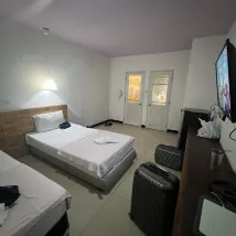 우리가 가본 가장 나쁘고 더러운 방이었습니다. 비싸지 않았더라도 더 깨끗한 방이나 더 싼 호텔이 있었습니다. 방의 시설에 대한 설명에는 아무것도 없었고, 될 수도 없었습니다. 수건만 있었습니다. 매우 나쁘고 오래된 냄새가 났습니다. 에어컨은 켜거나 끌 수만 있고 리모컨이 없습니다. 차갑고 더럽지 않은 냉장고 페어처럼 소리가 많이 났습니다. 우리는 조용한 방을 요청했습니다. 그게 전부는 아니었습니다. 그러니 거기에 가지 마세요. 좋은 리뷰는 아마 20년 전이었거나 사람들이 거짓말을 합니다.