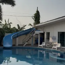 차를 이용하는 가족 여행객에게 좋은 곳입니다. 방은 가족이 머물기에 충분히 큽니다. 수영장은 슬라이드가 있어서 좋았고, 제 아이는 정말 좋아했습니다! 호텔은 안타깝게도 그렇게 깨끗하지 않았지만 저에게는 괜찮았습니다.