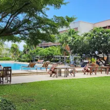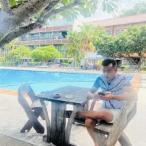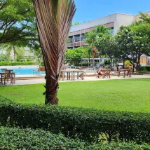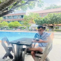 파타야 비치와 매우 가까워서 지름길로 갈 수 있습니다. 호텔 욕실은 크고 비교적 깨끗합니다. 객실의 침대와 가구는 모두 짙은 갈색 나무로 되어 있어서 조금은 고대적이고 원시적인 느낌이 들어요... 창밖에는 큰 수영장이 있는데, 외국인들이 일광욕을 하고 수영을 하고 있어요. 관심이 있고 햇볕이 무섭지 않다면 가서 체험할 수 있어요 haha 🤣 마당의 푸른 식물들이 참 예쁘네요~ 웨이터의 태도가 좋고, 짐을 옮겨주고 무선 네트워크에 연결해주는 사람도 있어요 🛜