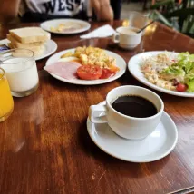 너무 초라하고 보기 흉했습니다. 모기와 벌레가 있었고 샤워실에는 작은 지네도 있었습니다. 해변으로 가려면 앞 식당 뒷문을 통해 길고 좁은 통로를 통과해야 한다. 아침 식사는 매우 간단합니다.