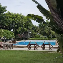 이 오두막은 하루에 천 달러도 안 됩니다. 폭격당한 것처럼 보이는 방에 우리를 체크인시키려고 했습니다. 창문을 활짝 열어 놓았는데 하수구 냄새가 났습니다. 지금 청소를 해 주겠다고 했습니다. 협상 끝에 방을 업그레이드해 주었습니다. 방은 넓었지만 모든 것이 너무 낡았습니다. 바닥은 삐걱거렸고, 베개는 나무 재질이었고, 소파와 침대는 찢어져 있었습니다. 수영장은 5일 동안이나 들어가지 못했습니다. 정말 끔찍했습니다. 청소는 된 것 같았지만요. 이 정도 가격이라면 시내에 있는 다른 호텔을 알아보는 게 좋습니다. 그런 호텔이 정말 많거든요.