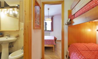 Small, comfortable apartment house "Genziana". 9 apartments in the property. In the district of Penia 1.5 km from the centre of Alba di Canazei, 3 km from the centre of Canazei, in a quiet position residential area (villas), 800 m from the skiing area. In the house: storage room for skis, central heating system, heating available only from 01.Dec. - 01.May.. In Winter: please take snow chains. Parking, communal covered parking at the house. Grocery 300 m, supermarket 1 km, restaurant, bar 300 m, bus stop 50 m. Mountain railway 800 m, ski bus stop 50 m. Nearby attractions: Sella Ronda 800 m, Marmolada 9 km. Please note: car recommended. Additional accommodations can be booked. "Apt 1", 2-room apartment 46 m2, on the lower ground floor, north facing position. Comfortable and tasteful furnishings: open living/sleeping room with 1 sofabed and 1 x 1 bunk beds, TV and flat screen. 1 double bedroom. Kitchenette (oven, 4 induction hot plates, microwave, electric coffee machine) with dining table. Shower/bidet/WC. Boiler. Parquet floors. View of the mountains and the valley. Facilities: washing machine, hair dryer. Please note: suitable for families. Non-smokers only. Fire extinguisher. IT022039C2LR49UWLT