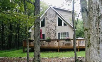 This was a great location for a birthday weekend away for five gals. The kitchen was well stocked with supplies and the cabin was cozy for late nights. The location was right in the middle of Towamensing Trails with trees all around (and loads of deer). Our favorite feature was the indoor fireplace that ran on a timer. We didn't get a chance to use any of the community's amenities but it seems like a lovely neighborhood, though you aren't particularly close to the neighbors.