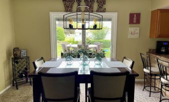 Be charmed with an open concept living room, kitchen and dining area with a large den, including a wood burning fireplace with ample seating. Includes a spacious outdoor deck with 2 separate entry points includes grill, patio loungers, outdoor firepit and propane fed - fire feature dining table.About pets:Pets allowed: limit 4 total.About children:Children allowed: ages 0-17.About customRules:Please use driveway only for parking.