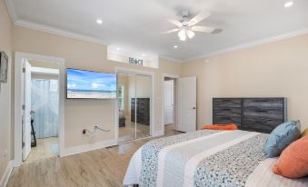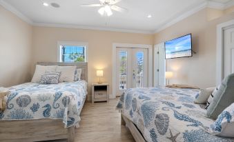 This condo offers a fully equipped modern kitchen in case you wish to prepare a fresh seafood dinner, meals and/or snacks. The living area is welcoming and well appointed. Both full sized sofas in the living area are sleeper sofas to offer additional sleep spaces. The primary bedroom offers a convenient en suite bathroom and walks out to a balcony. This tasteful primary bedroom has a King sized bed, for plenty of room to stretch out and sleep comfortably. The guest room has 2 Queen sized beds and also walks out to a balcony. This bedroom also offers an en suite bathroom with a convenient tub/shower combo. Enjoy free wi-fi and Smart TV's for streaming and playing games. Free At Last Cottage has lots to offer with premium amenities, a great location with a coastal village charm that has a Seaside vibe. Book Free At Last Cottage and discover why Purple Parrot is a fan favorite in Key, Florida.