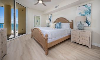 With nine-foot ceilings and expansive wall-to-wall sliders, the condo invites the tranquility of the beach indoors, creating an open and spacious ambiance. The thoughtfully designed interiors capture the coastal charm, making it a welcoming haven for relaxation and rejuvenation.