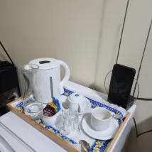 객실에는 주전자와 냉장고만 있습니다. 다만 건물이 좀 오래되어서 방음이 잘 안되네요