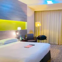 제 객실에는 포 포인츠의 시그니처 침대가 있어 최상의 편안함을 선사했고, 무료 고속 Wi-Fi, 넓은 업무 공간, 레인폴 샤워기가 설치된 욕실 등 현대적인 편의시설도 갖춰져 있었습니다.