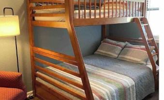 2 bedroom/1 bath cottage with a loft. The primary bed holds one queen size bed, 2nd bedroom has a twin over full bunk bed and the loft has a fold out futon. The living room couch also has a fold out couch.About pets:No pets allowed.About checkOut:Check out before 11:00 AM.About children:Children allowed: ages 0-17.About checkIn:Check in after 4:00 PM.About smoking:Smoking is not permitted.About events:No events allowed.