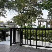 우리가 예약한 바다 전망 풀빌라는 바다 표면이 1%도 안 됩니다. 시력이 나쁜 사람은 잎과 흙 경사면 사이의 틈새로 바다를 전혀 볼 수 없습니다. 게다가, 빌라는 로비에서 차로 5분, 도보로 4층을 올라가야 도착할 수 있으며(실제 사진은 그림 1, 홍보 사진은 그림 2, 계단은 그림 3) 공원 전체의 맨 끝에 위치해 있습니다.