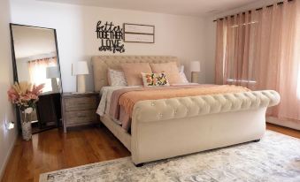 The home has been split into two residences in which the owners/hosts live in the small apartment on the east side of the house. Guests will enjoy the full use of the 5 bedroom, 2.5 bath home and all of its outdoor amenities, including backyard, fire pit, and large parking area for 4-5 cars.