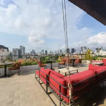 환경: 나쁘지 않습니다. 프놈펜 왕궁, 옥상 레스토랑, 아름다운 수영장이 100m 조금 넘는 거리에 있습니다!