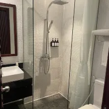사진을 찍지 않았어요. 방이 너무 작았어요. 같은 가격대의 호텔과 비교했을 때 정말 너무 작았어요. 이렇게 작은 호텔에 묵어본 적이 없었어요. 방에 침대를 놓을 공간이 거의 없었어요. 책상 하나 놓기도 힘들었어요. 저녁에는 저녁을 먹을 곳도 없었어요. 아래층 프런트 데스크 밖 복도에서 먹어야 했어요. 모기도 많았어요. 정말 최악이었어요! 욕실도 비교적 작았지만 시설은 괜찮았어요. 에어컨은 시끄럽지 않았고 온수기도 정상이었어요. 나머지는 너무 아쉬웠어요.