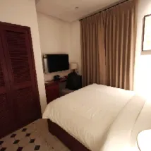 Rooms are rather smaller than you expect but the beds are comfortable , snow white and clean. The hotel's cafe is very cozy and offers many options for fine dining. The front desk guy was very nice and friendly, he greeted us every time with a big smile. It was my second stay here and I'll definitely come back.