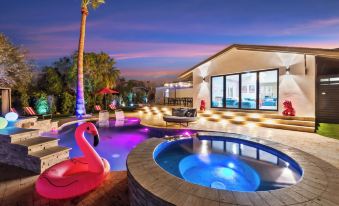 Celebrate in style at The Pink Palm III - A huge oasis that will make sure you have an unforgettable time with your girls. The brand new heated pool & spa, beautiful landscaping, in-pool chaises, beach cabanas, putt-putt, zen cactus garden & fire pit provide an upscale and beach club feeling at home. 3 masterfully created murals, a dance pool/party room, and a wonderful selection of wallpapers provide countless photo opportunities and will fulfill your wildest IG dreams. Just 6 min to Old Town!
